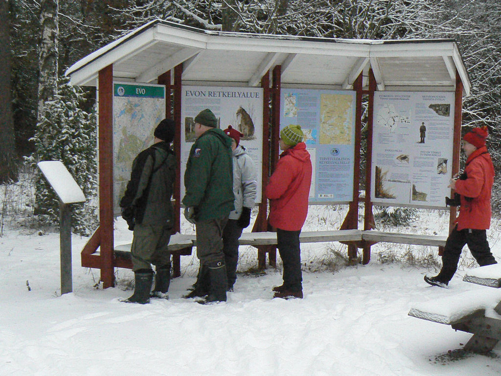 Noin puolentoista tunnin autoilun jälkeen käännyimme Lammilta Padasjoelle menevältä tieltä kohti Niemisjärven kalastusaluetta. Tienvarressa oli rivistössä hienoja numeroituja hirvipassipaikkoja, sillä tällä alueella käyvät Suomen korkea-arvoiset vieraat ja diplomaatit metsästysretkillään. Evon retkeilyalue on yksi Metsähallituksen hallinnoimista valtion retkeilyalueista ja Niemisjärvet ovat hyvin kalastukseen soveltuvia järviä. Järvien ympäri on rakennettu polkuja ja laitureita sekä myös monia tulipaikkoja ja laavuja puuvajoineen ja vessoineen.