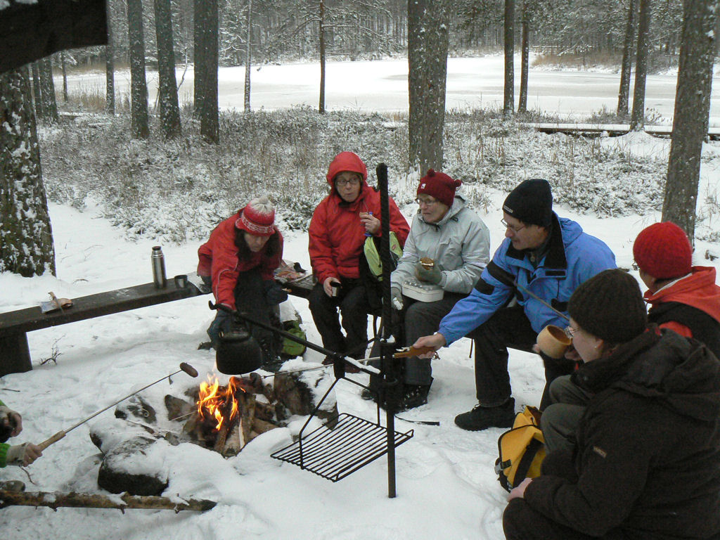 minkä totesimme hyväksi evästelypaikaksi. Pian porisi kahvit tulilla ja monta