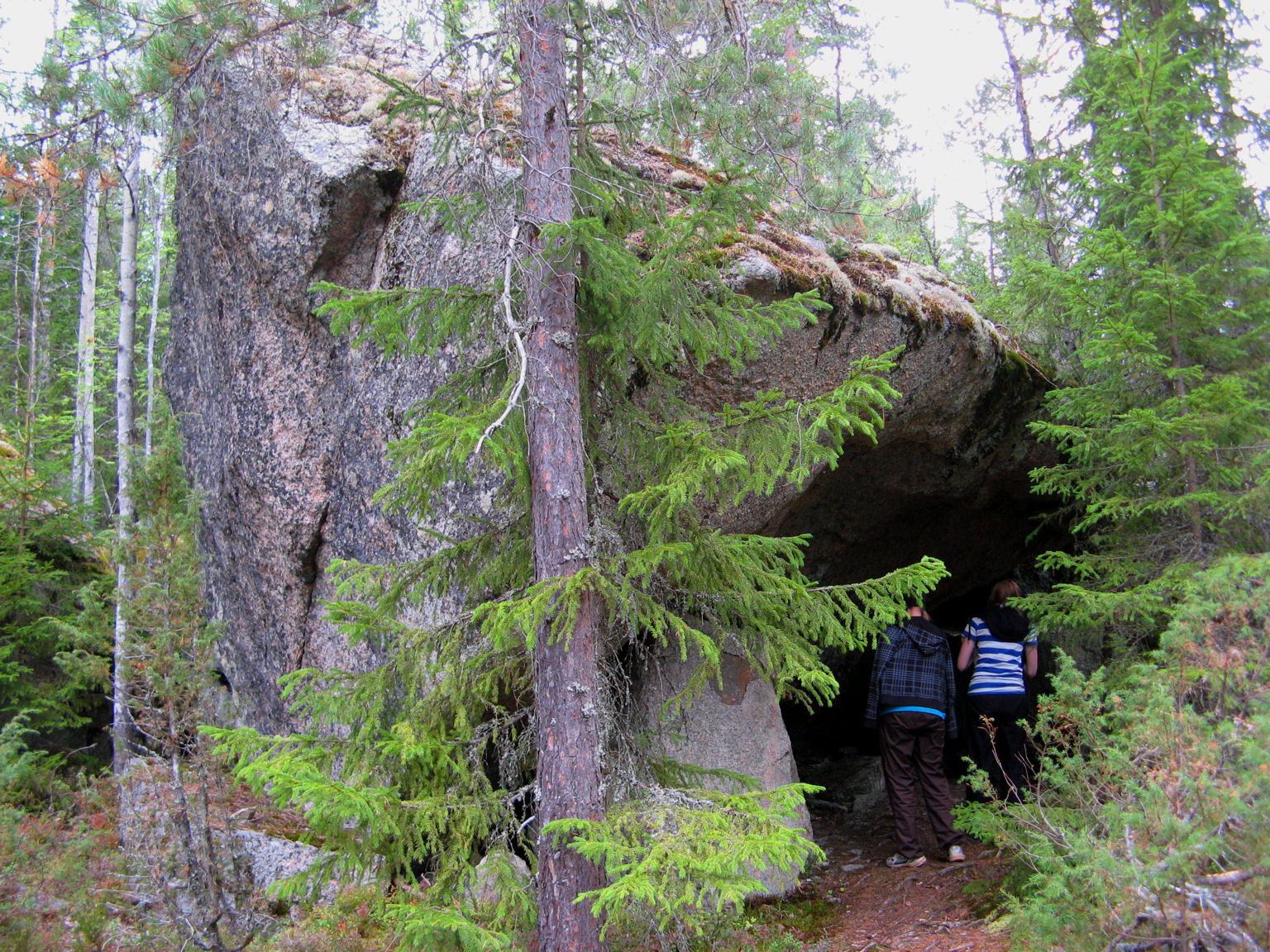 Aloitimme retkemme autoilemalla 1850-luvun Huhtalan vanhan maatilan pihapiiriin. Kiertelimme ja ihastelimme sen hirsisiä rakennuksia. Aittoja oli useita päärakennuksen ympärillä ja silmiin pistivät hienot puuleikkaukset ja lukkosalvokset. Samalla saimme myös kosketuksen ampiaisiin, joita oli sitten jatkossa retkemme joka vaiheessa. Palailimme takaisin Heretyn vanhalle tukkikämpälle, minne jätimme automme ja aloitimme retkilounaan jälkeen kulkumme kohti Vahterjärveä. Maasto oli mäkistä ja kivikkoista, puiden juuret olivat tulleet poluilla ikävästi esille, joten haastetta riitti etenemiseemme. Reilun tunnin kulkemisen jälkeen Hevosjärven kohdalla päätimme lyhentää reittiämme ja valitsimme leiripaikaksemme Kuorejärven laavun ympäristön. Telttapaikalle oli jo hieman aiemmin tullut helsinkiläispariskunta 4-vuotiaan Jim-poikansa kanssa. Osa retkeläisistämme jatkoi leiriytymisen jälkeen kulkua ilman kantamuksia Latokuusikon luontopolulle ja sieltä vielä hieman pohjoiseen hakemaan ``Viinahoilosta luoteeseen`` geokätköä, mikä löytyi komeiden siirtolohkareiden luota. Kello 19 maissa palailimme takaisin leiripaikkaamme, missä ilta sujui rattoisasti uimisen ja muiden leiritoimien parissa mm. tälle 4-vuotiaalle pojalle kaarnalaivoja ja käpylehmiä tehden. Ilta vierähti pitkälle leirinuotion ääressä rupatellen. Aamutoimien ja leirin purkamisen jälkeen lähdimme palamaan Heretyn kämpälle Kurkijärven kautta. Matka oli hieman lyhyempi kuin menoreittimme, mutta se meille väsyneille vaeltajille suotakoon. Kulkua helpotti vielä sekin, että rinkkamme olivat hieman keventyneet ainakin meidän juomavetemme ja syötyjen eväiden osalta. Paljon jäi vielä näkemistä Isojärven kansallispuistosta, joten seuraava tavoitteemme on varmaankin kansallispuiston länsiosaan ja itse Isojärveen tutustuminen. Teksti: Pekka Ahokas, kuvat: Maritta Saarenpää |