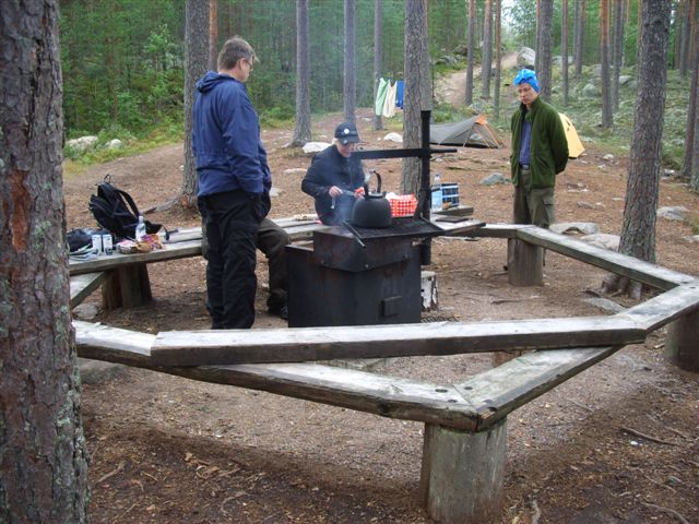 Pian istuskelimme Kuutinlahden taukopaikalla nokipannukahvilla ja paistelemassa
